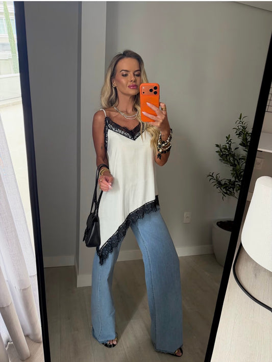 Top Cetim e Renda Assimétrico ATENÇÃO! PEÇA EM PRÉ VENDA, COM ENVIO EM 21/03