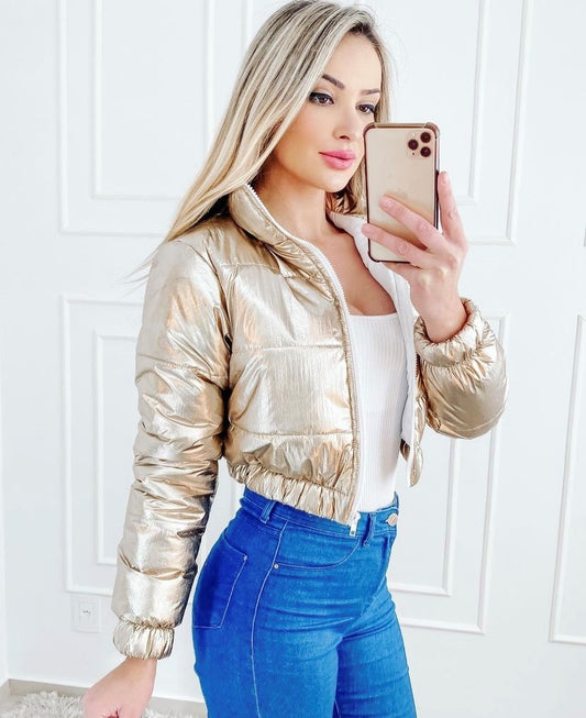 PromoçãoJaqueta Puffer Metalizada com Bolsos