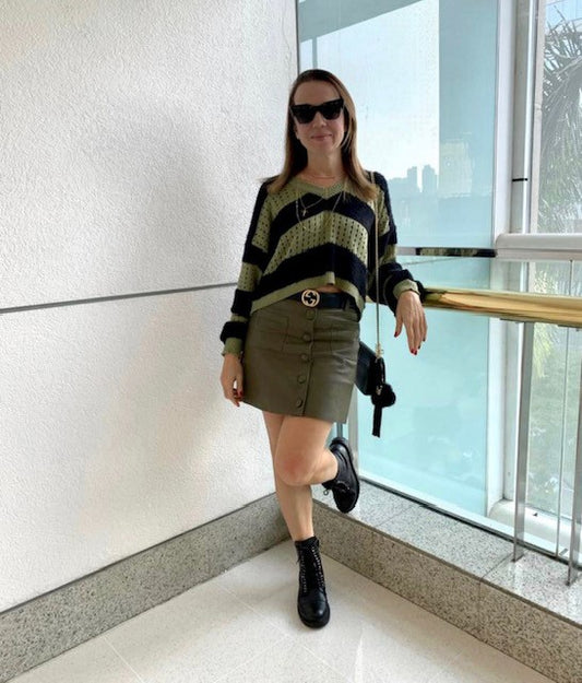 PromoçãoBlusa Manga Longa Tricot Bicolor